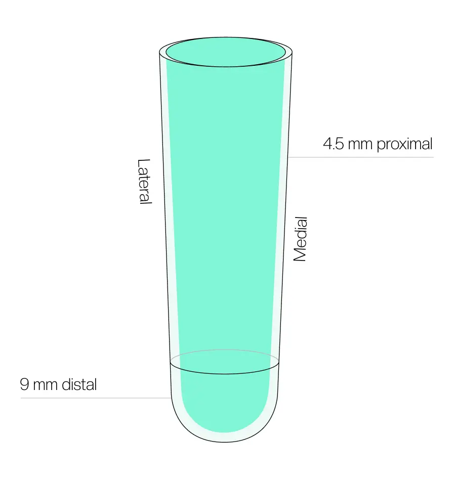 La fórmula única del liner Alpha Duo combina una capa interna de gel clásico que no daña la piel y la nutre, con una capa externa de silicon que brinda estabilidad y contiene el tejido blando. El exterior del liner sin tela tiene un acabado satinado para colocarlo fácilmente sin usar lubricantes. El perfil simétrico permite la rotación del liner, lo que prolonga su vida útil.